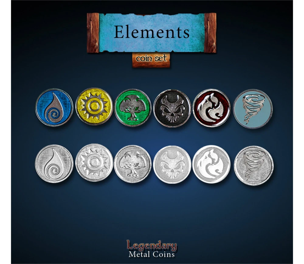 Très belles pièces pour vos jeux de société. Thème Elements Legendary coins de Drawlab.