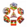 Le set comprend 7 dés multi-faces arc en ciel dans une boite :