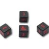 - dé des dizaines 00 à 90 (dé à 10 côtés) : 22 mm de hauteur et 22 mm de diamètre