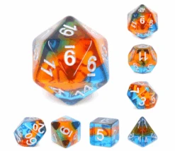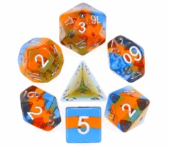 Dés à jouer multi-faces translucides Parallel Universes, orange et bleu