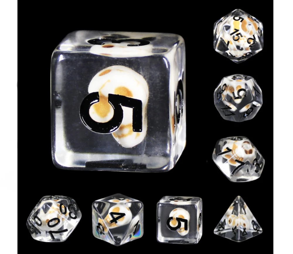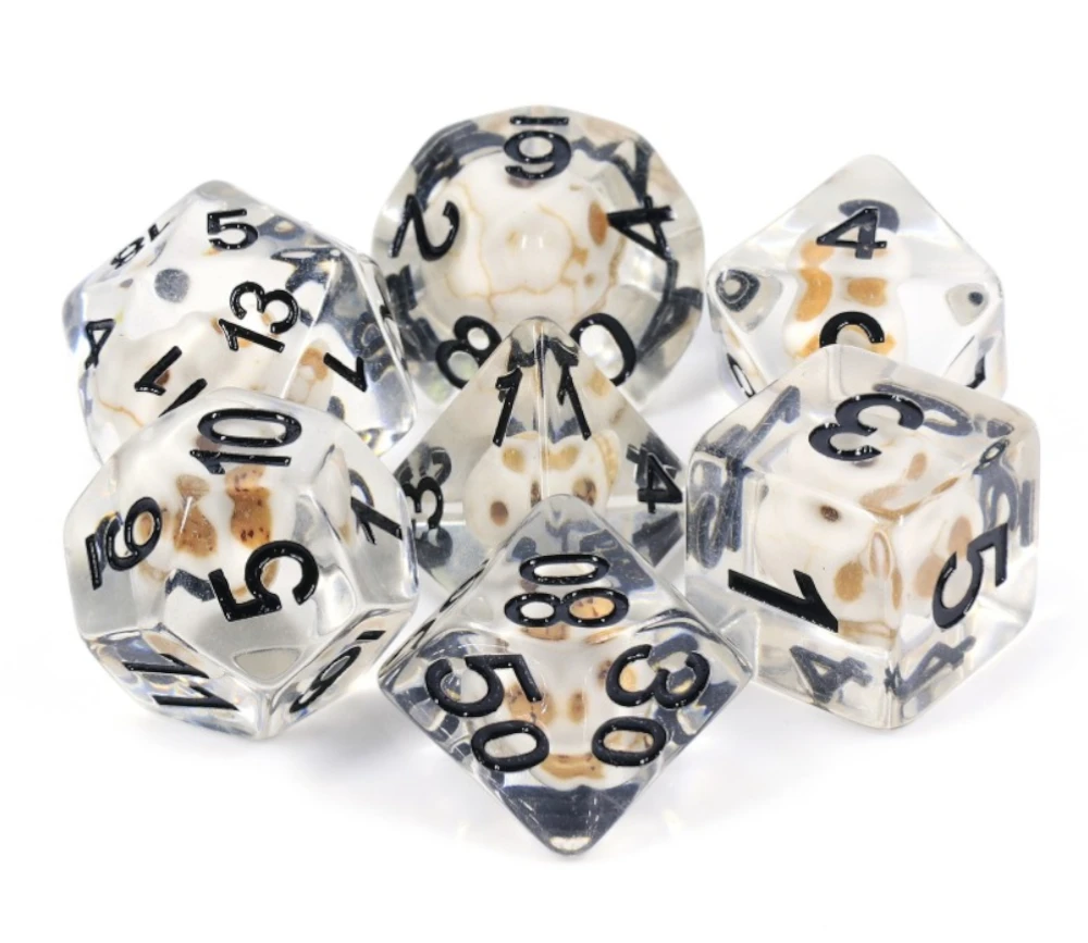 Dés à jouer multi-faces Stone Skull translucides avec crane, mini tête de squelette