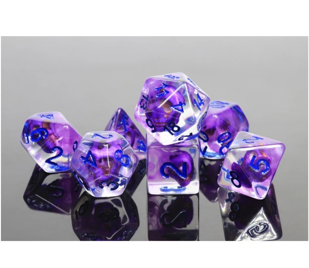 Dés à jouer multi-faces translucides avec squelette de crane turquoise/violet