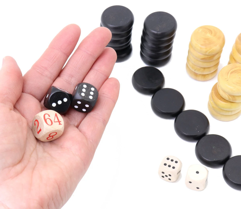Set de dés et pions de rechange pour votre jeu de backgammon ou jeu de jacquet.