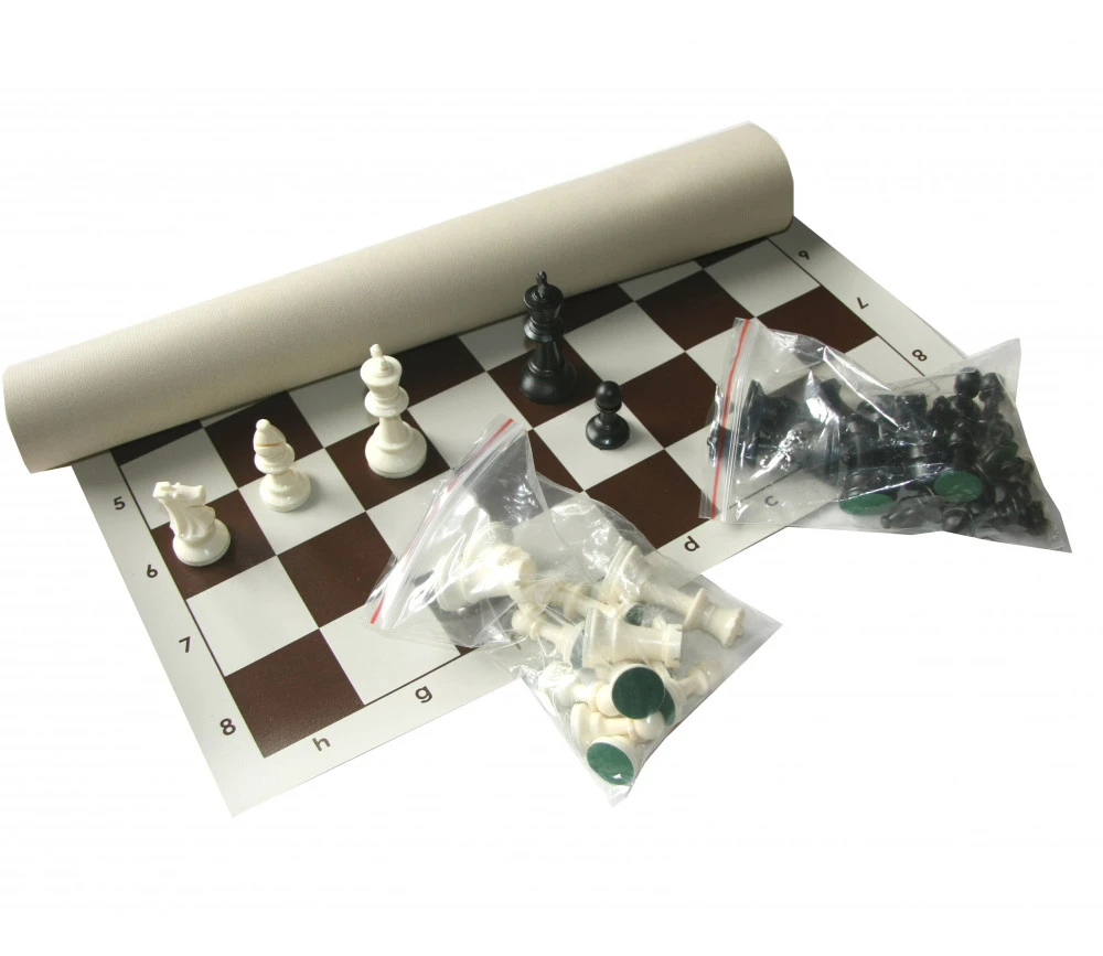 - Plateau de jeu souple qui s’enroule et se déroule facilement (stable pour le jeu et facile à ranger). Dimensions 49 x 49 cm. Cases de l’échiquier de 5.7 cm.