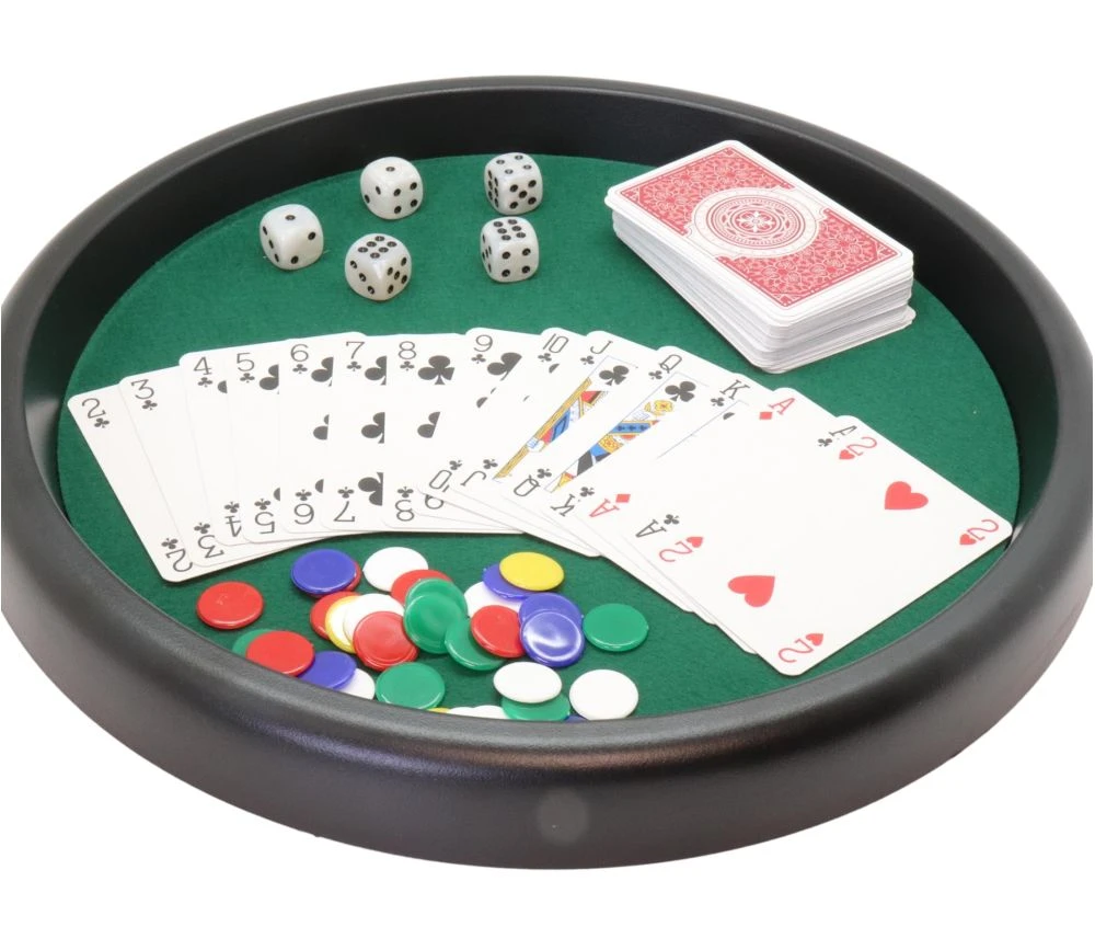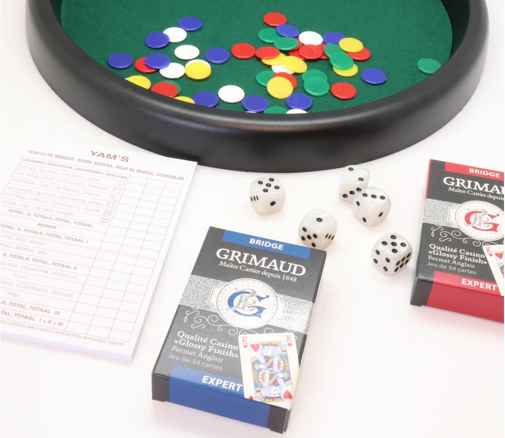 Set avec des nombreux accessoires de jeux pour jouer à tous vos jeux de société traditionnels de dés et de cartes.