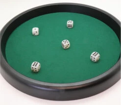 - 1 piste de dés à jouer. Plateau rond de 33 cm de diamètre extérieur avec rebord en plastique noir et fond feutrine verte