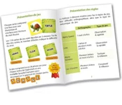 La boîte de jeu comprend 4 règles. Elles permettent de jouer dans différentes circonstances (en classe, en famille, en séance d’orthophonie ou en cours de soutien) :