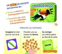 Les règles de SpeedoDingo ont été mises au point en classe avec des enseignants. En jouant, les élèves apprennent sans en avoir l’impression (ni même la pression). Grâce aux règles de jeu variées, simples et dynamiques de SpeedoDingo, les joueurs sont concentrés sur ce qu’ils font. Ils prennent du plaisir et travaillent l’orthographe en même temps.