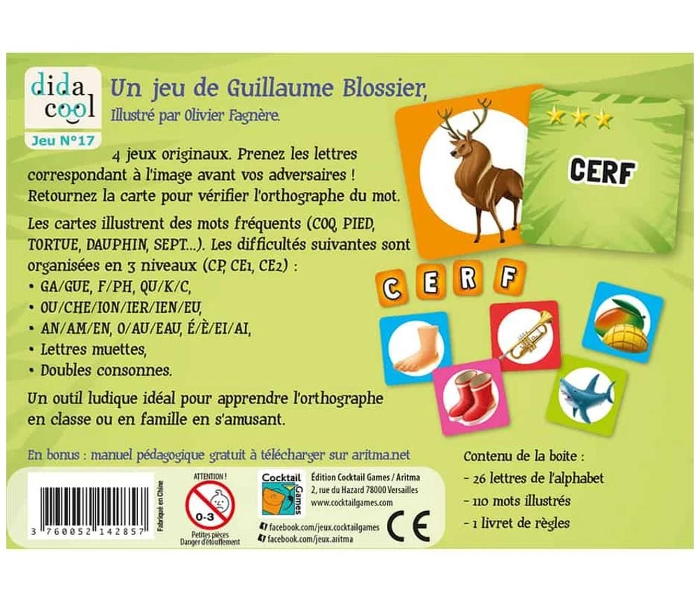 Le jeu est jouable en complète autonomie, car les solutions des exercices se trouvent aux dos des cartes – aucun adulte n’est requis pour s’amuser en apprenant. De plus, 4 règles différentes permettent de varier les parties et les façons d’aborder l’orthographe.