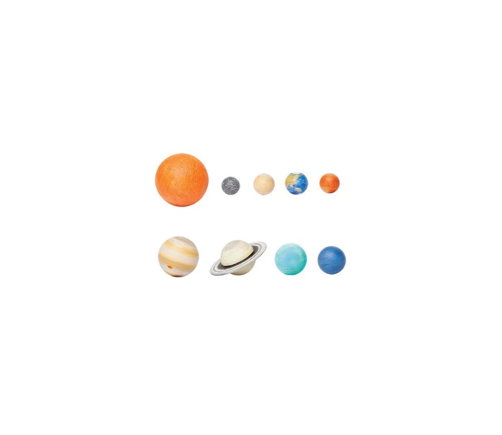 Caractéristiques : Ces 9 figurines planètes peuvent être jouées avec ou sans le plateau d’acétate qui les montre dans leurs orbites par rapport au soleil. Les différences de taille entre les planètes sont distinguables pour la valeur éducative supplémentaire.