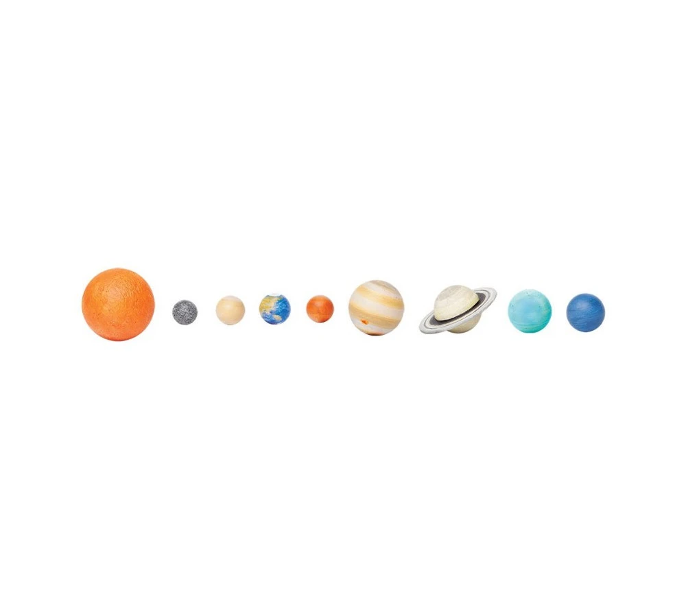 Taille et Couleur : Le soleil a un diamètre équivalent à une balle de golf et les tailles diminuent pour représenter jusqu’à la minuscule Mercure. Ce système solaire est réalisé avec des couleurs fortement précises et des détails.
