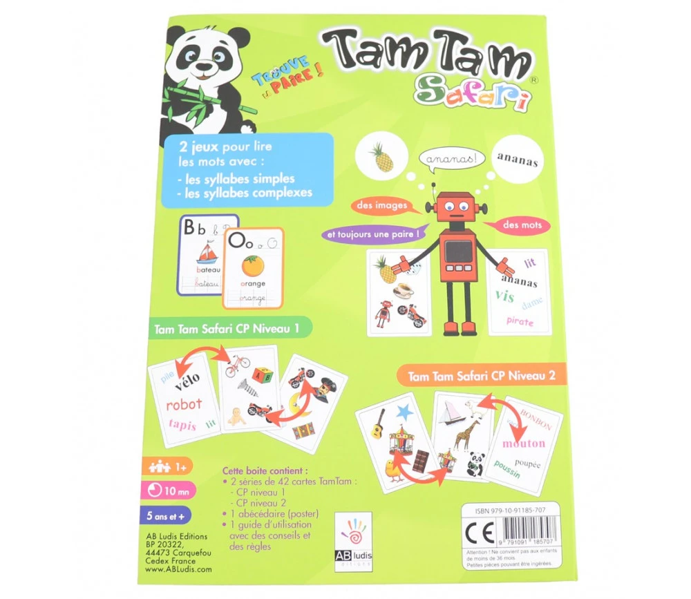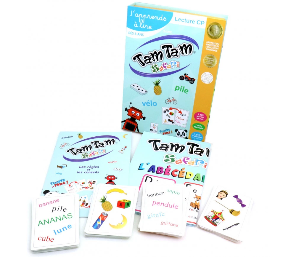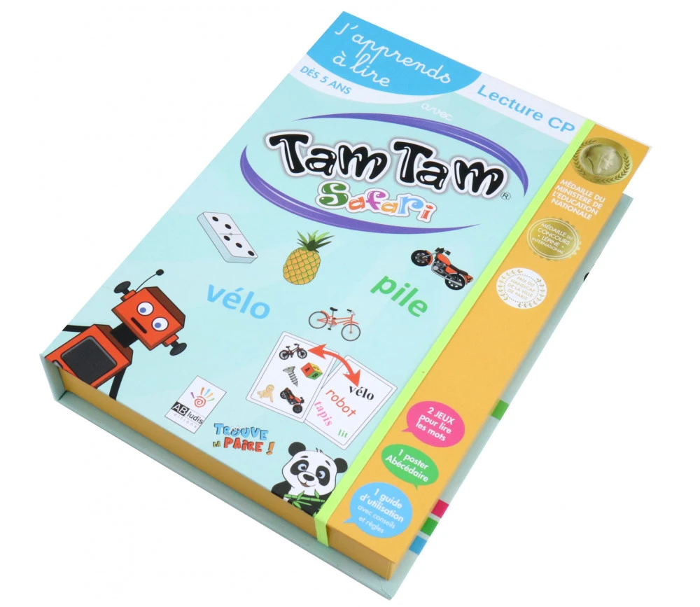 Grâce à une forme très ludique et à des règles simples, Tam Tam Safari aide l’enfant à renforcer ses compétences dans le domaine de la lecture !