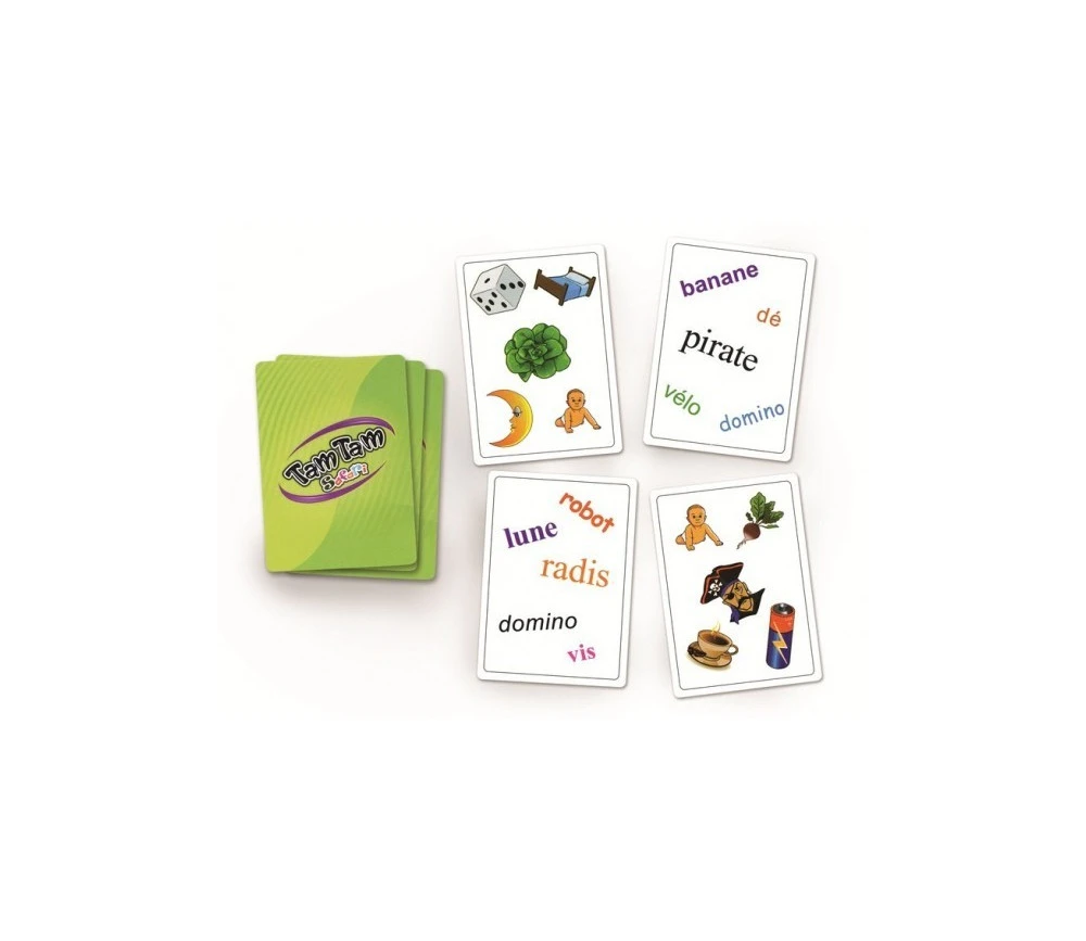 Principe du jeu Tamtam : Le joueur doit retrouver l’unique paire image-mot qui existe entre une carte-images et une carte-mots.