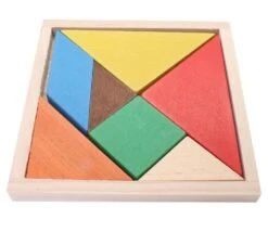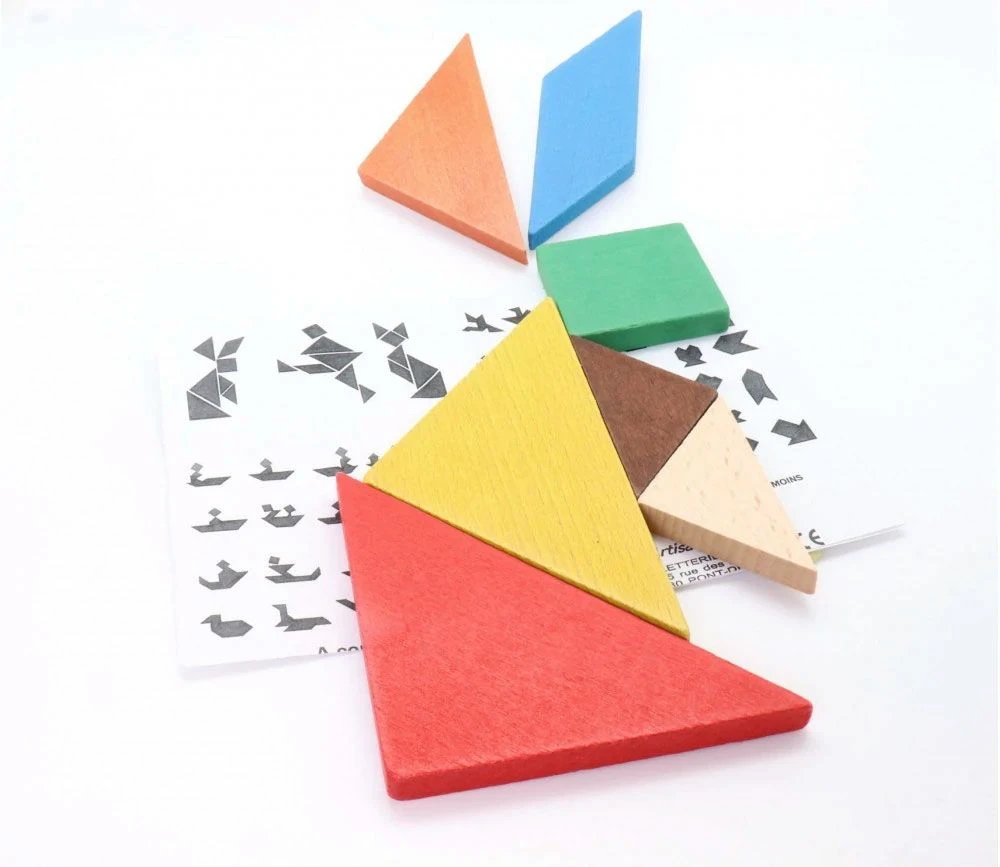 Jeu de tangram fabriqué dans le Jura en France de manière traditionnelle.