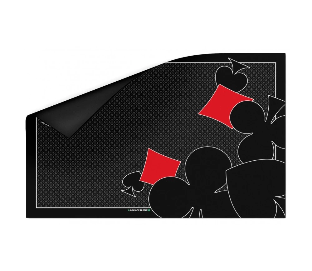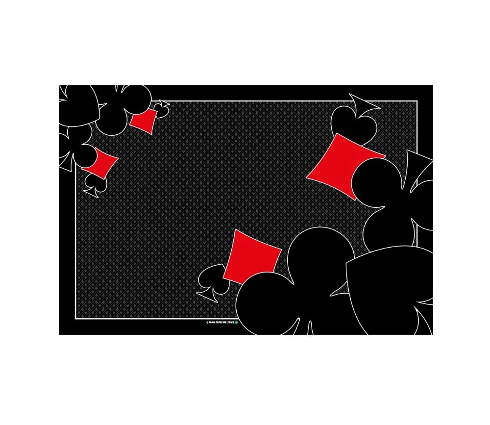 Beau tapis de cartes, fabrication dans un atelier Français. Impression d’un super motif atout : coeur, pique, carreau et trèfle.