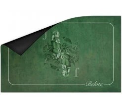 Tapis de jeu pour jeux de cartes Belote de 40 x 60 cm, couleur verte. Tapis néoprène et revêtement Jersey. Ce tapis pour jouer à la Belote vous permet de ramasser plus facilement vos cartes et tient bien sur votre table de jeu. Bon maintien du tapis.