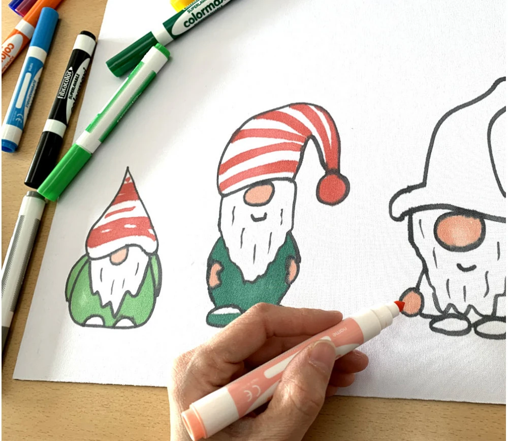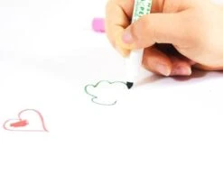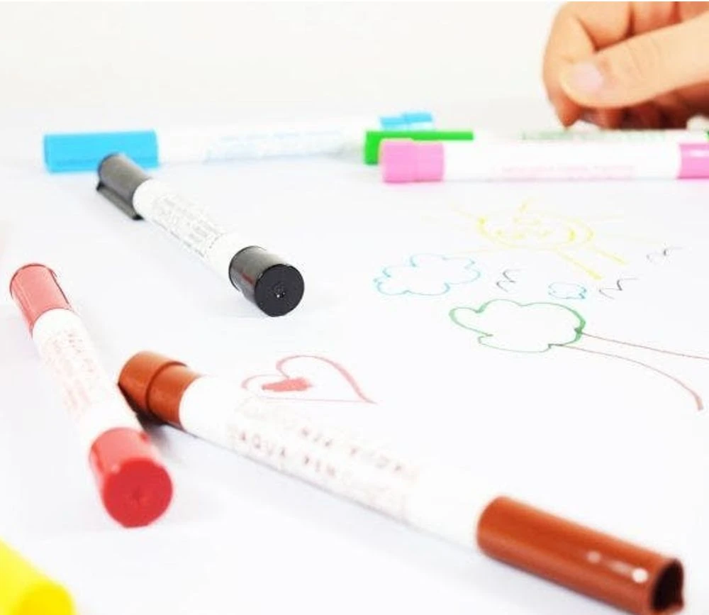 Matériel personnalisable avec des feutres aqua de couleur vives et une encre lavable à l’eau.