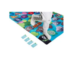 Tapis avec fond bleu comme une marre d’eau avec cases colorées chiffres et lettres. Tapis de jeu avec dessus en polyester agréable au toucher et dessous antidérapant en caoutchouc. Il peut être utilisé à l’intérieur et en extérieur. Il est lavable en machine.