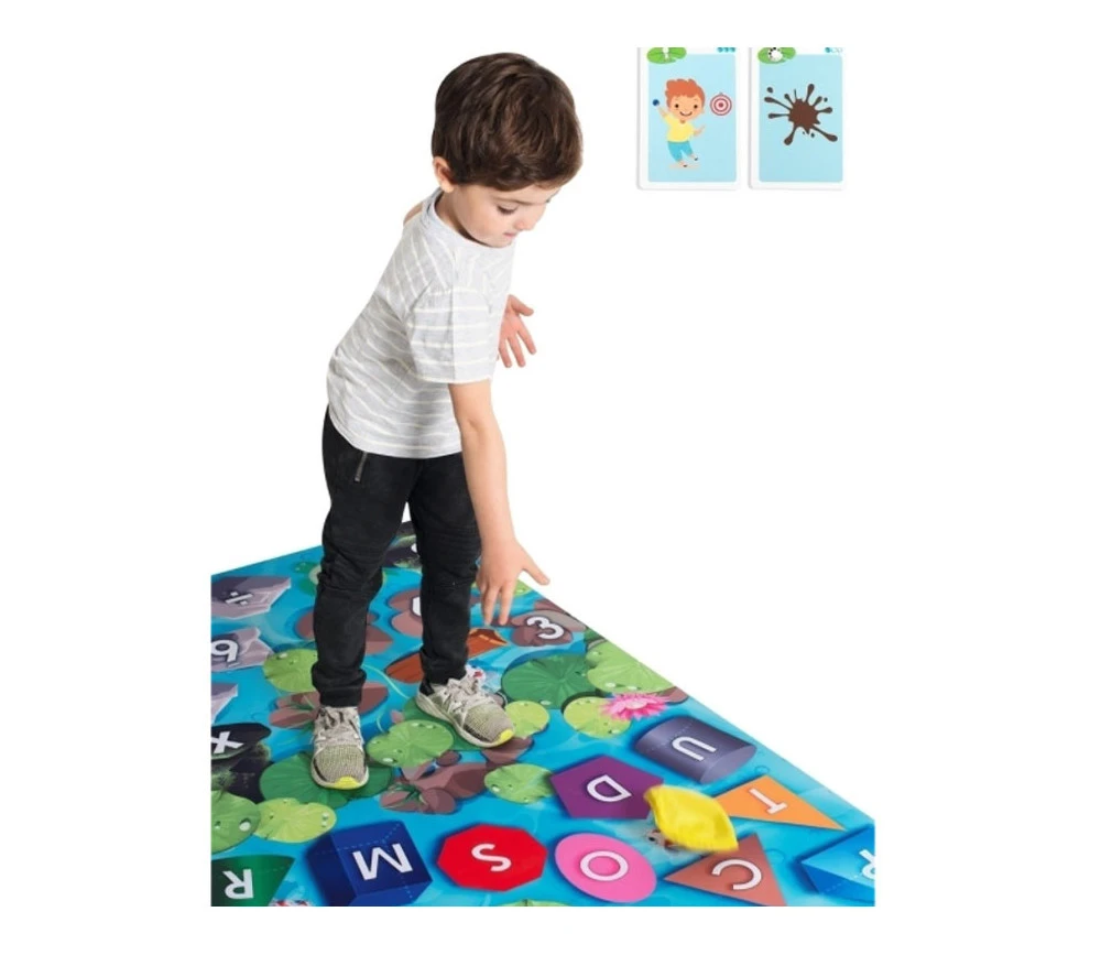 Le but du jeu sera de trouver la bonne réponse et se déplacer en sautant en fonction des indications des cartes défis. Plusieurs variantes sont possibles en fonction des niveaux de motricité de l’enfant.