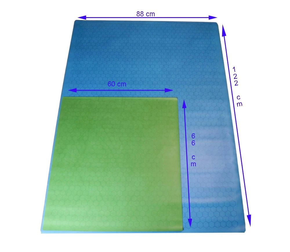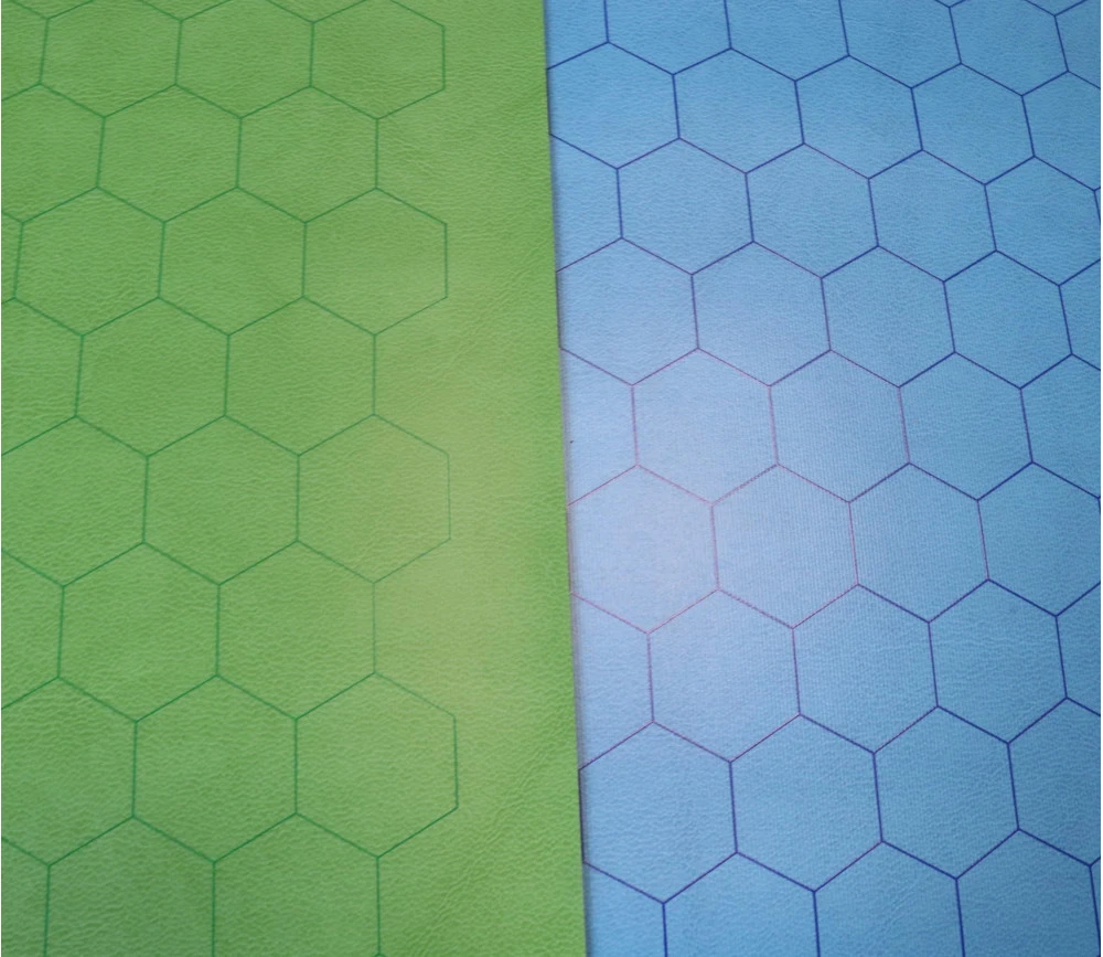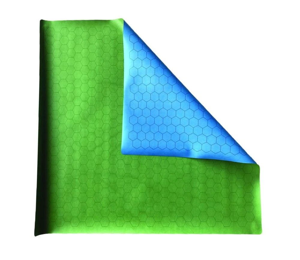 Plateaux de jeu en vinyle couleur bleu et vert (voir photo). Battle map personnalisable.
