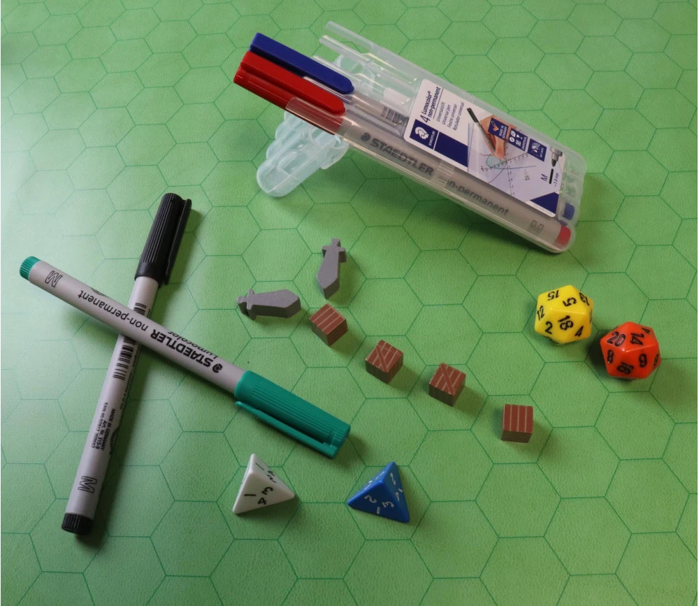 Plateau de jeu neutre avec des quadrillages sur lequel vous pouvez écrire ou dessiner avec des crayons effaçables à l’eau.
