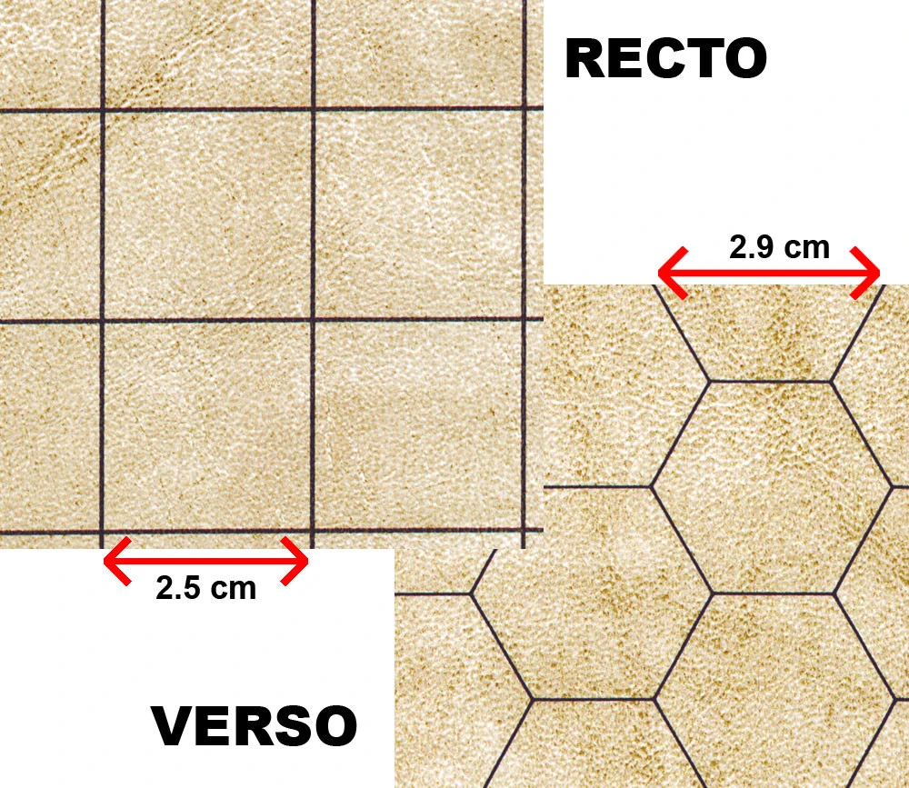 Plateaux de jeu en vinyl couleur sable (voir photo). Battle map personnalisable.