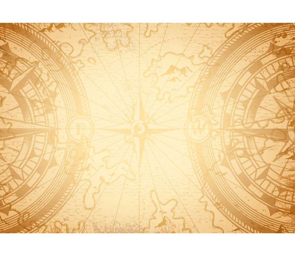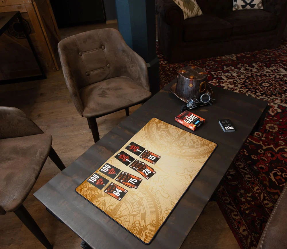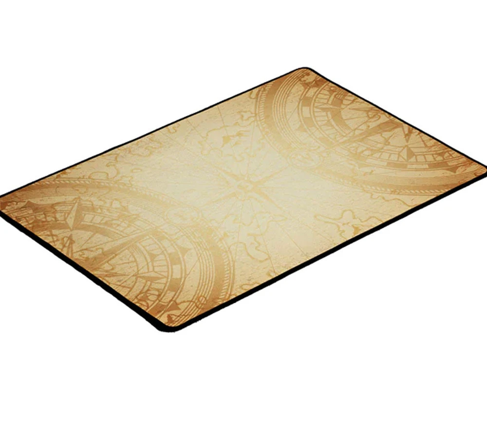 Tapis de jeux de société et stratégie de 60 x 40 cm compas jaune ocre style voyageur. Contour du tapis en double couture pour un plus bel effet et plus grande durée de vie.