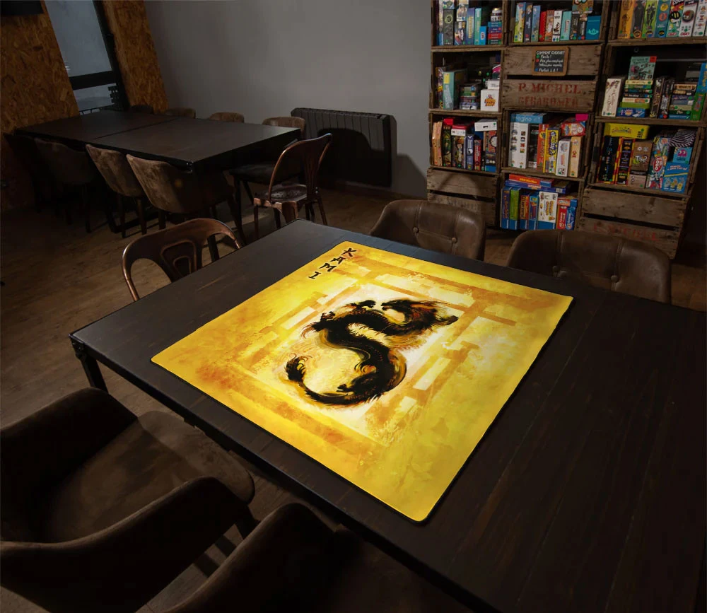 Tapis de jeux de société et stratégie de 60 x 60 cm dragon style japonais. Contour du tapis en double couture pour un plus bel effet et plus grande durée de vie.