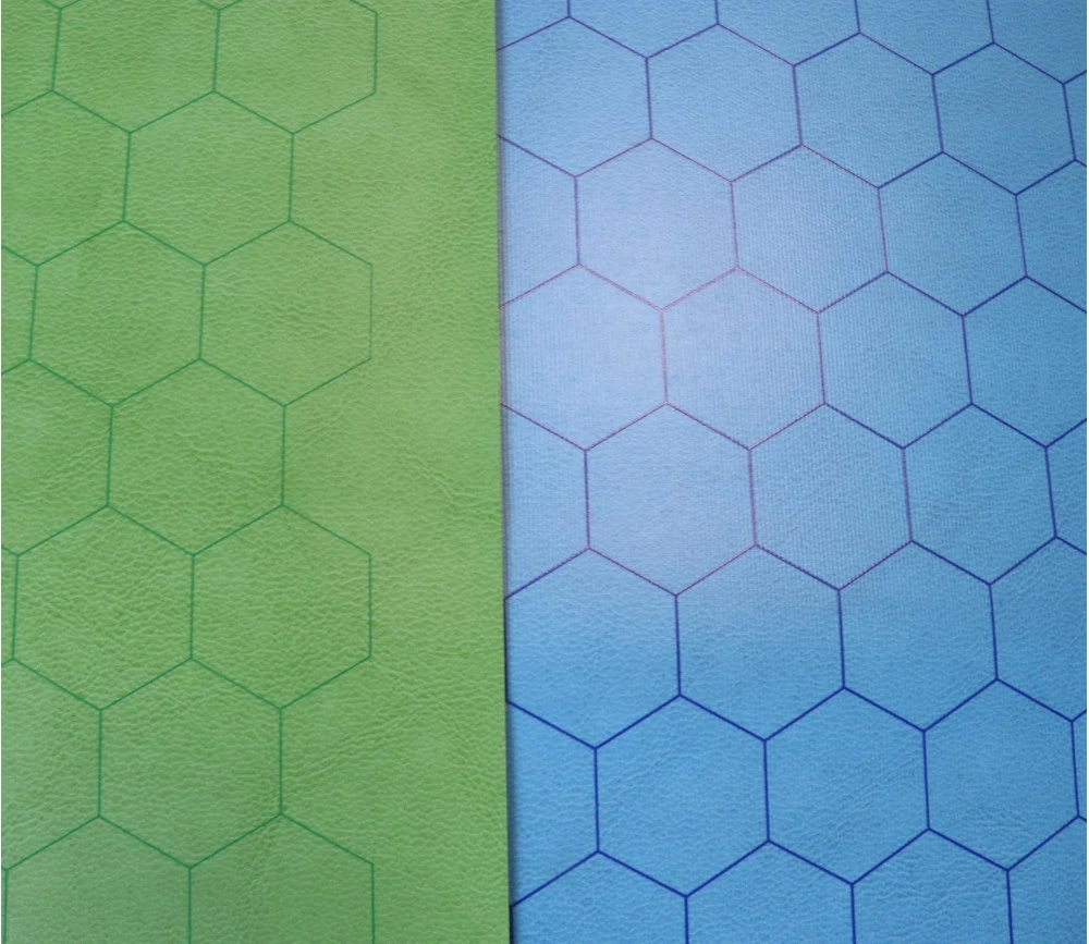 Piste de jeu en vinyle coloris bleu et vert (voir photo). Carte de bataille à personnaliser.