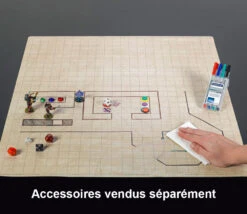 Plateau de jeu neutre avec des quadrillages sur lesquels vous pouvez écrire ou dessiner avec des crayons effaçables à l’eau spécifiques.