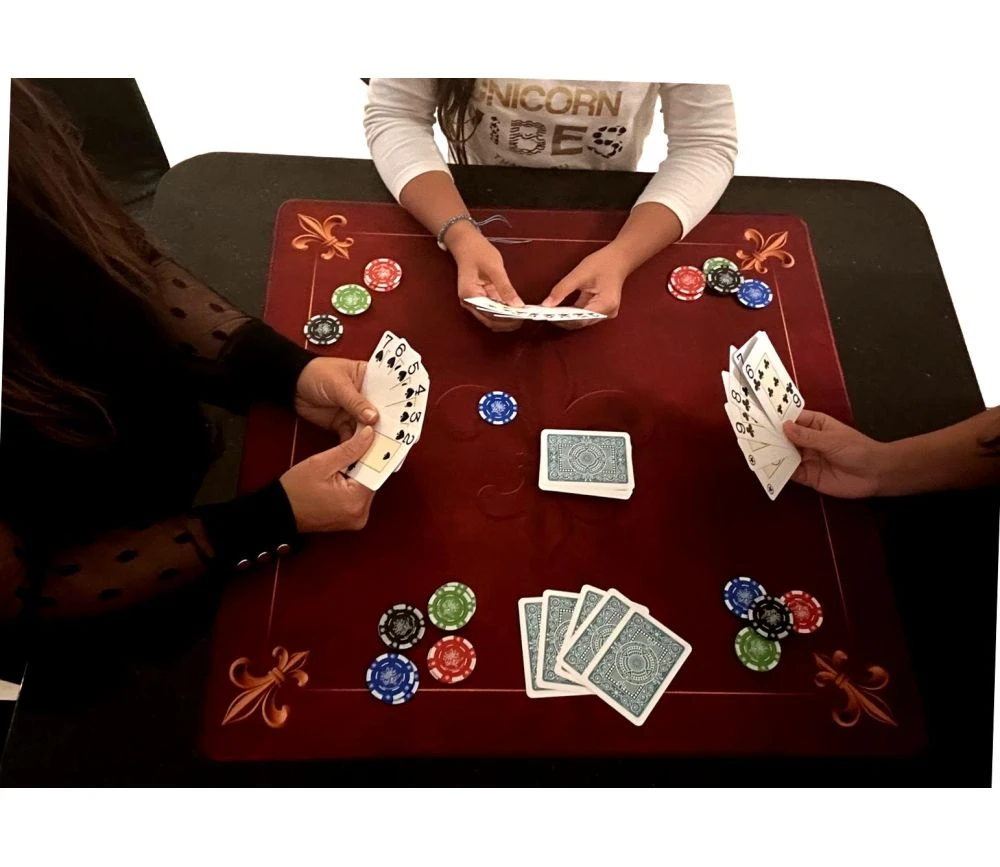 Tapis de jeu rouge de 60 x 60 cm. Grand Tapis pour jouer à vos jeux de cartes ou de rôle favoris : Belote, Tarot, Bridge, poker, rami… Sa texture vous permet de ramasser plus facilement vos cartes et tient bien sur votre table de jeu, super qualité qui vous permet des tirages de dés parfaits.