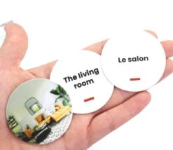 Vous pouvez utiliser ces cartes sous la forme du jeu de mistigri en prenant 15 cartes images, 14 cartes mots français et 14 cartes mots anglais. Enlevez les mots : greniers et attic Dans cette règle du jeu, on distribue les cartes à jouer entre les joueurs. Chacun à leur tour, les joueurs défaussent leurs cartes par triplé (3 cartes représentant la même pièce). Ensuite ils présentent leur jeu à leur voisin, celui-ci tire une carte au hasard. Le joueur suivant essaye ensuite de faire des triplés avec les cartes qu’il a en main et présente ensuite son jeu au joueur suivant. Le gagnant est le joueur qui a réussi à se débarrasser le premier de toutes ses cartes.