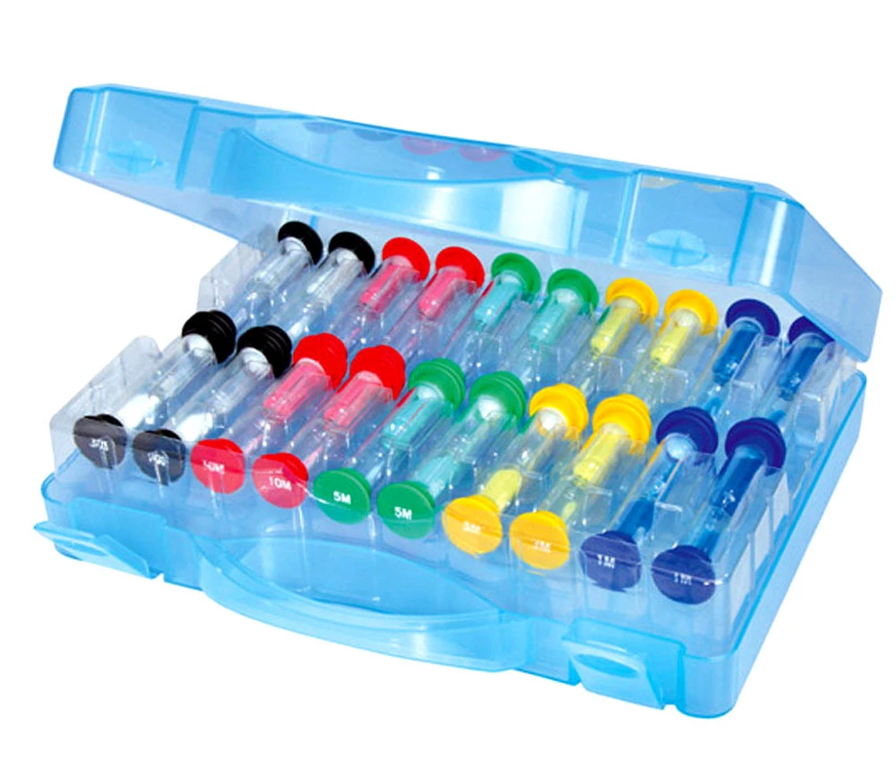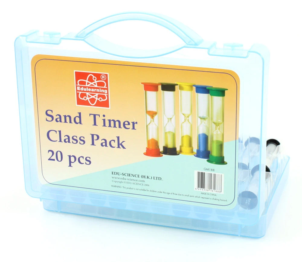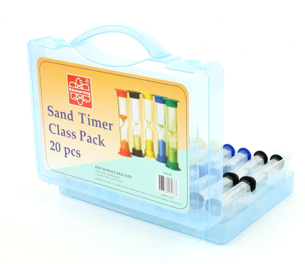Composition de la valisette 20 sabliers pour jeux avec leur durée approximative :