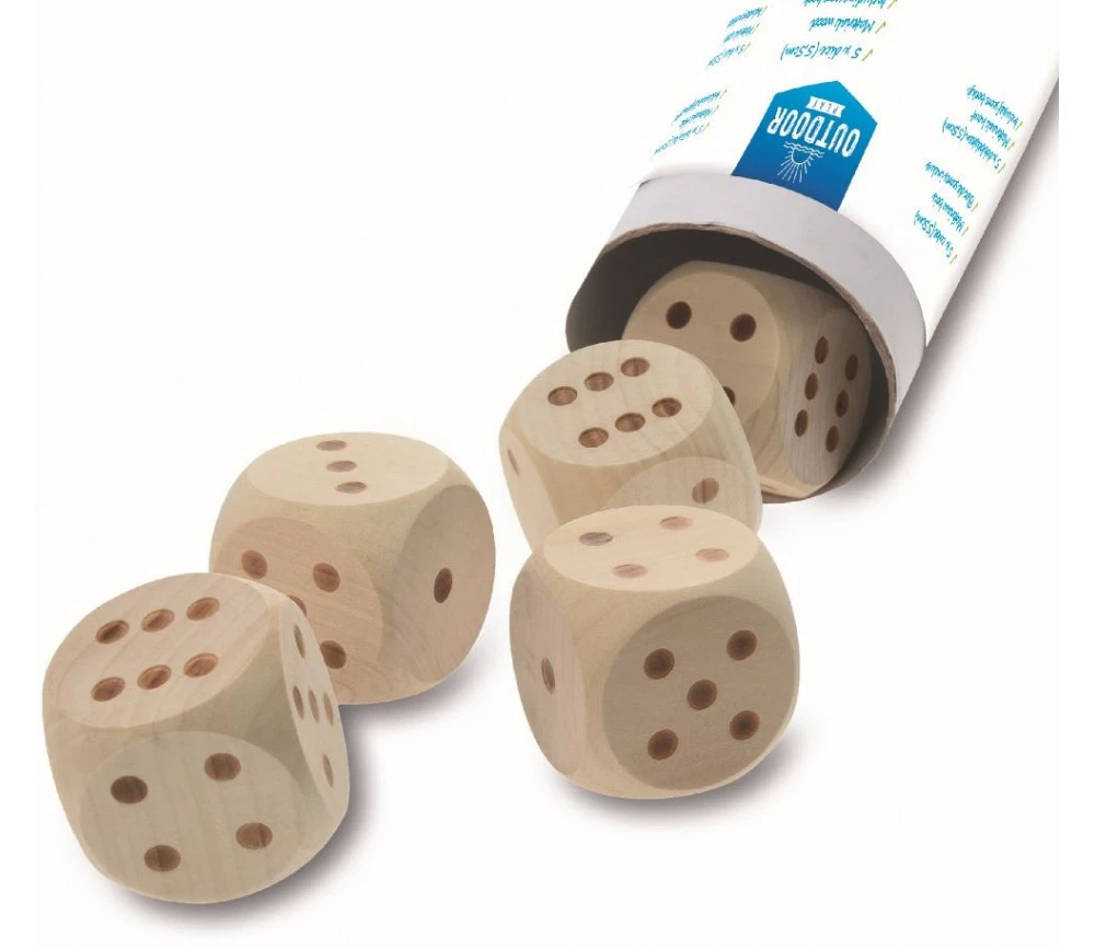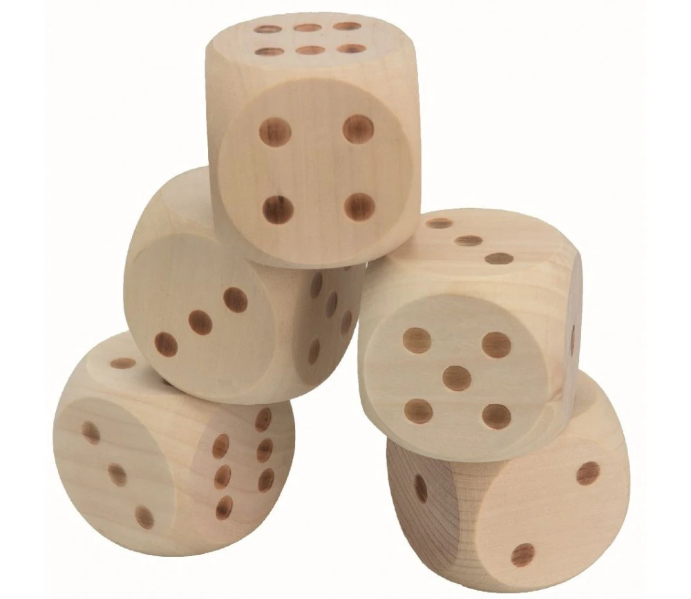 5 Dés de taille géante en bois naturel 55 mm avec un gravage des points de 1 à 6.